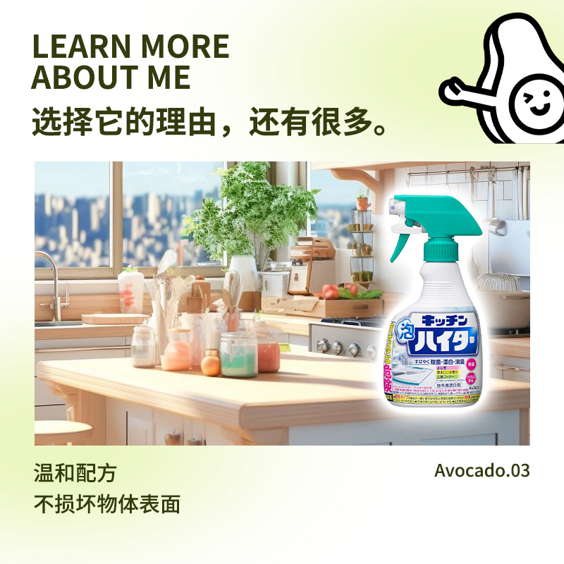 • 商品名称:日本进口花/王厨房泡沫漂白喷雾400ml 厨具灶台案板水槽清洁剂