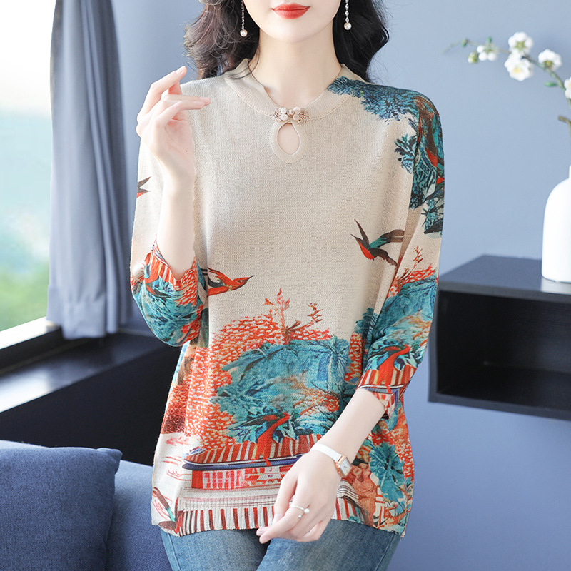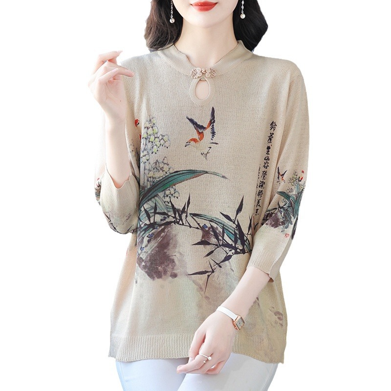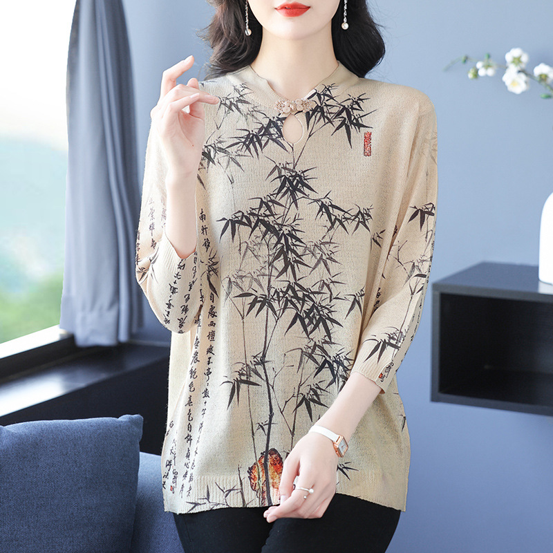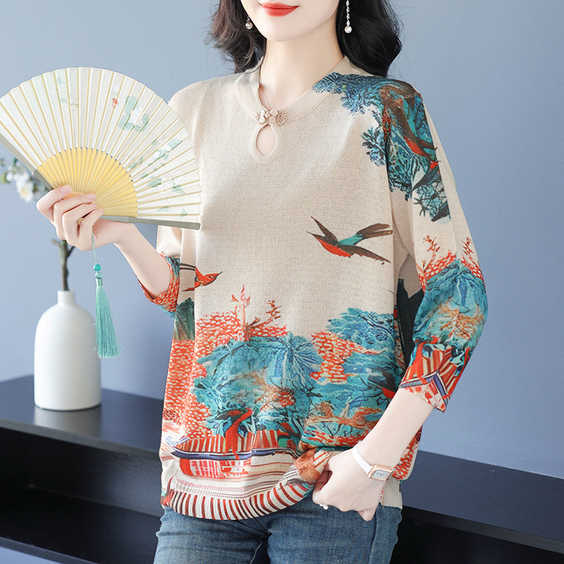 • 商品名称:2024春夏新款中年妈妈女装圆领遮肚七分袖显瘦针织衫上衣女