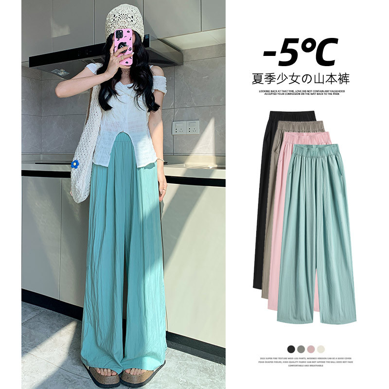 • 商品名称:湖蓝山本裤女春季2024新款高腰垂感休闲直筒夏季薄款慵懒风阔腿裤