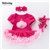 • 商品名称:跨境2023新款夏装女宝宝节日卡通短袖玫红哈衣裙三件套装生日童裙