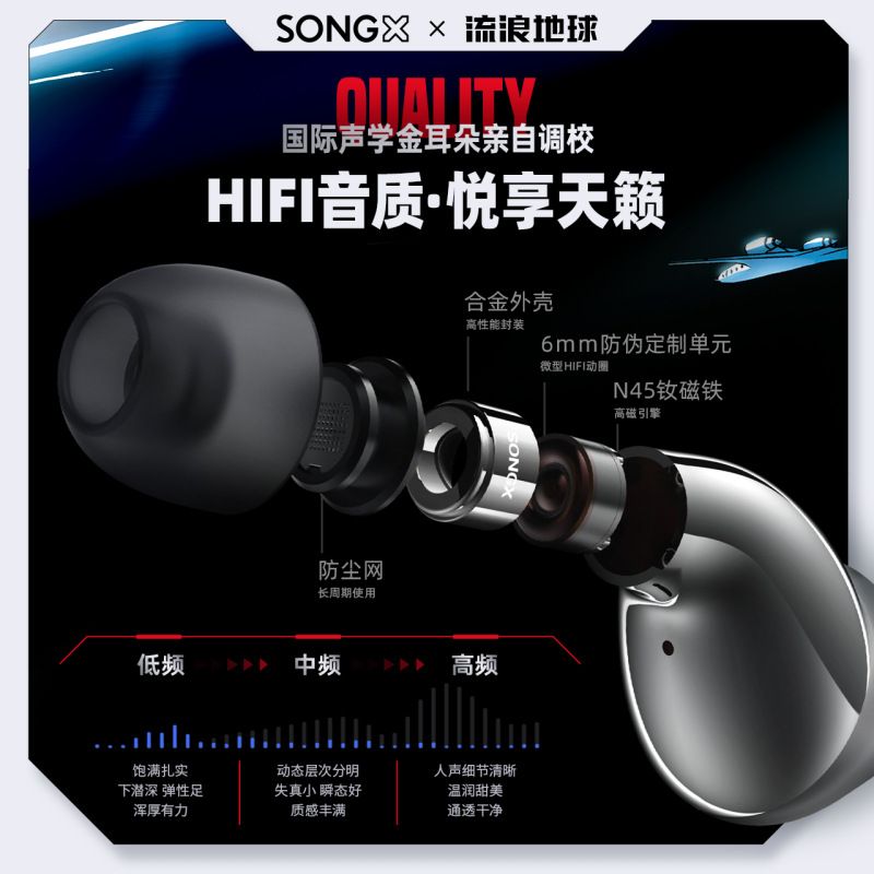 SONGX流浪地球联名款小真无线蓝牙耳机入耳式合金星环降噪新款