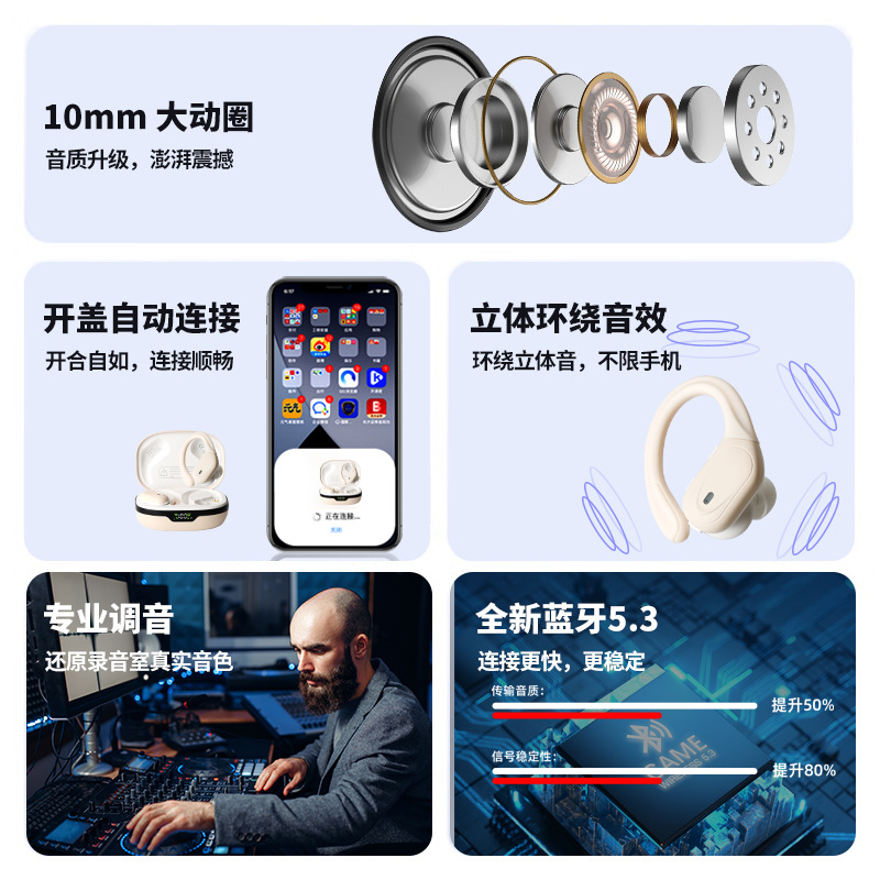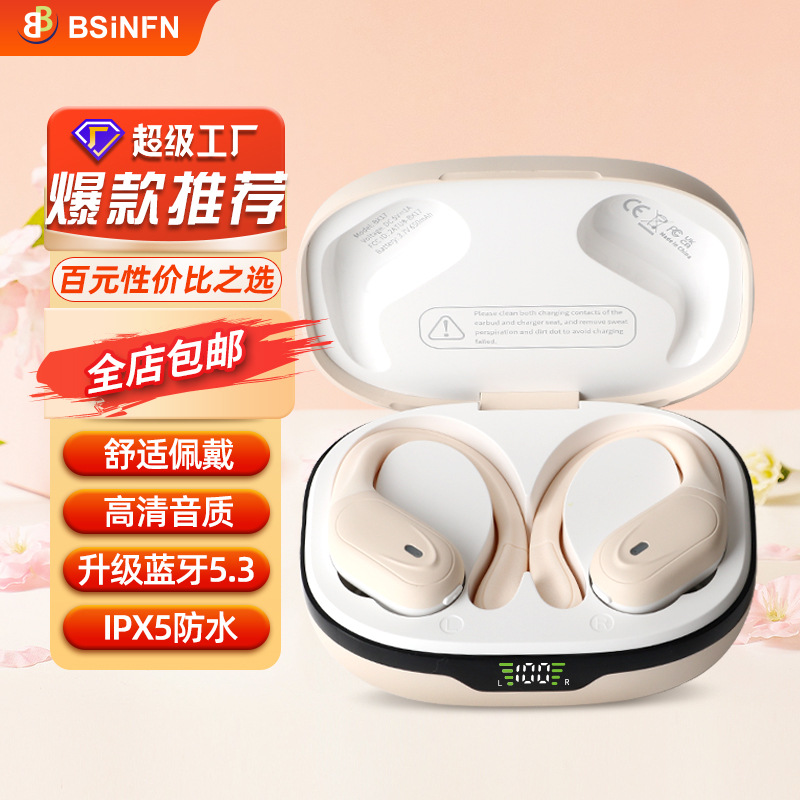 • 商品名称:新款原装私模智能数码降噪运动防水挂耳式无线耳机双唛蓝牙耳机