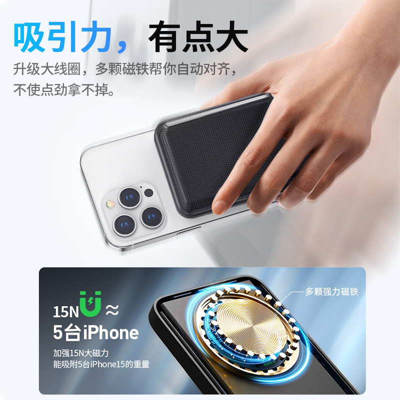 鼠来宝适用苹果Magsafe快充移动电源隐形支架小巧便携磁吸充电宝