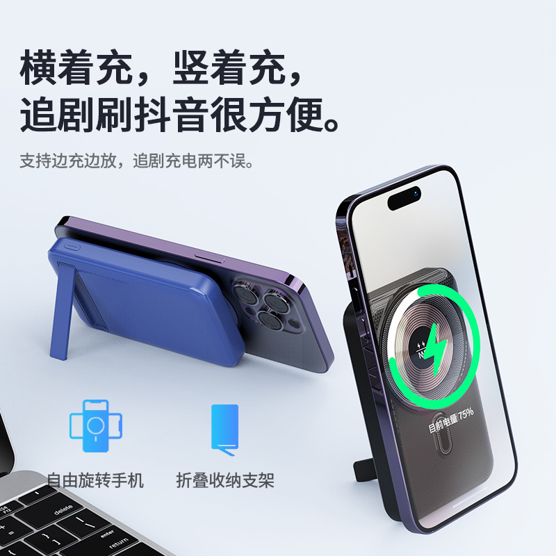 • 商品名称:鼠来宝适用苹果Magsafe快充移动电源隐形支架小巧便携磁吸充电宝