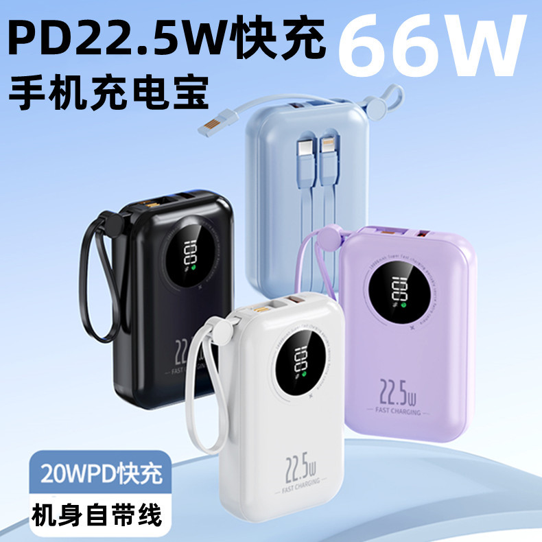 • 商品名称:66W数显PD22.5W快充兼容15代自带线手机移动电源20000毫安充电宝