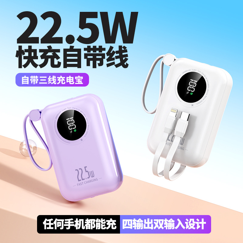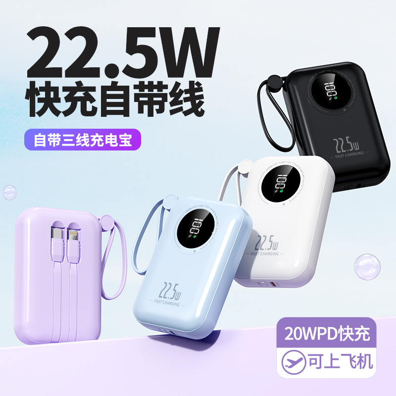 66W数显PD22.5W快充兼容15代自带线手机移动电源20000毫安充电宝