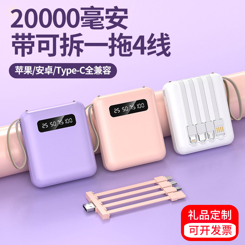 • 商品名称:迷你充电宝快充带线小巧便携20000毫安移动电源礼品印制logo