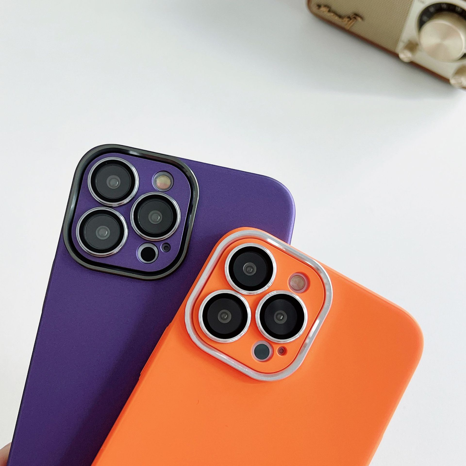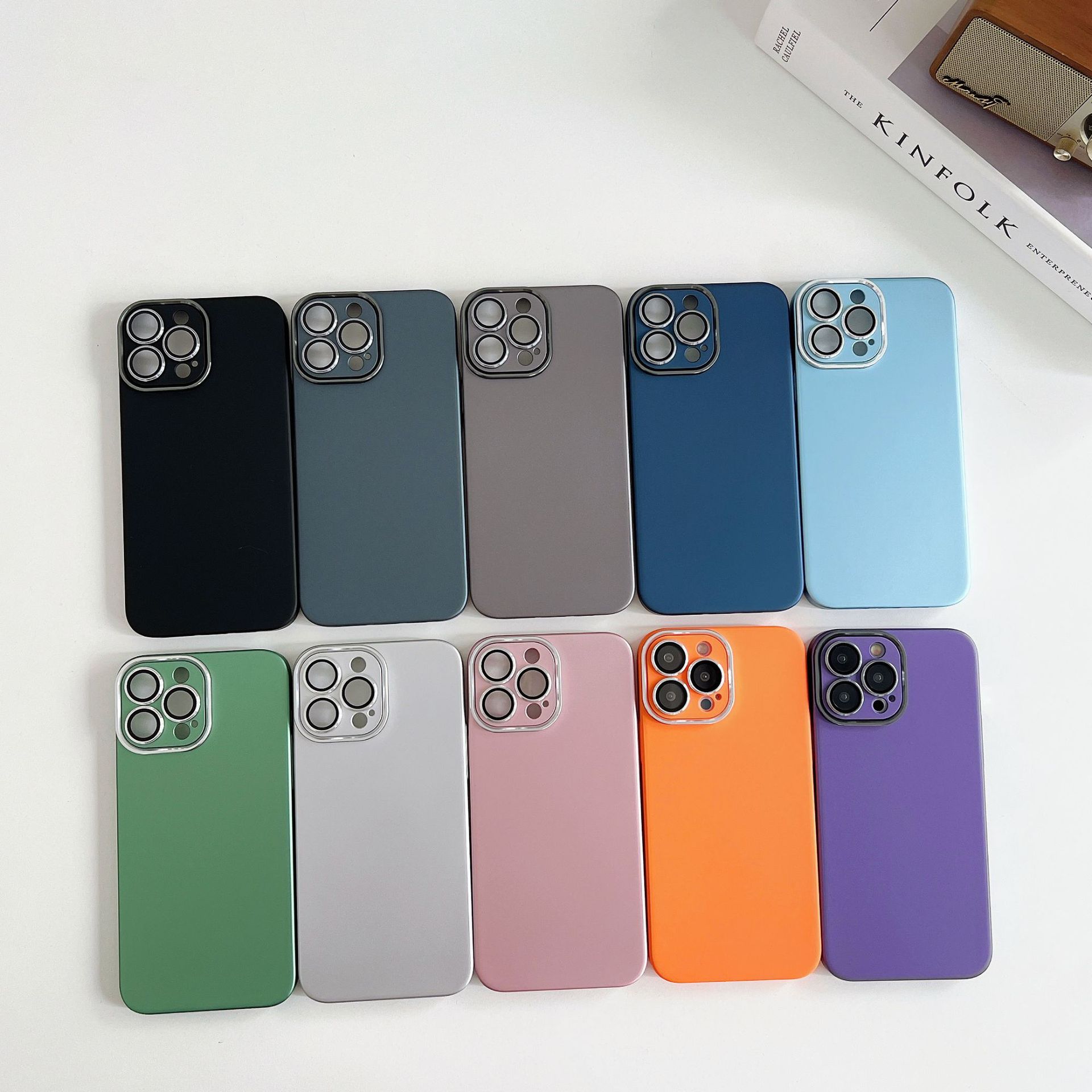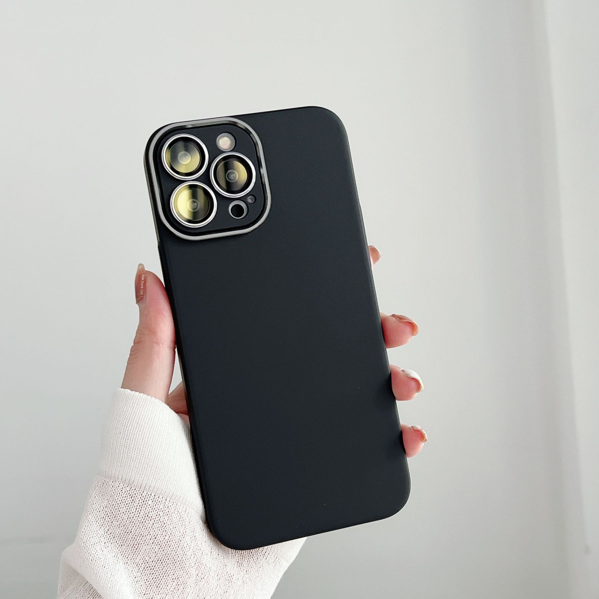 自带镜头膜适用15promax苹果14手机壳纯色iPhone13磨砂12金属硬壳