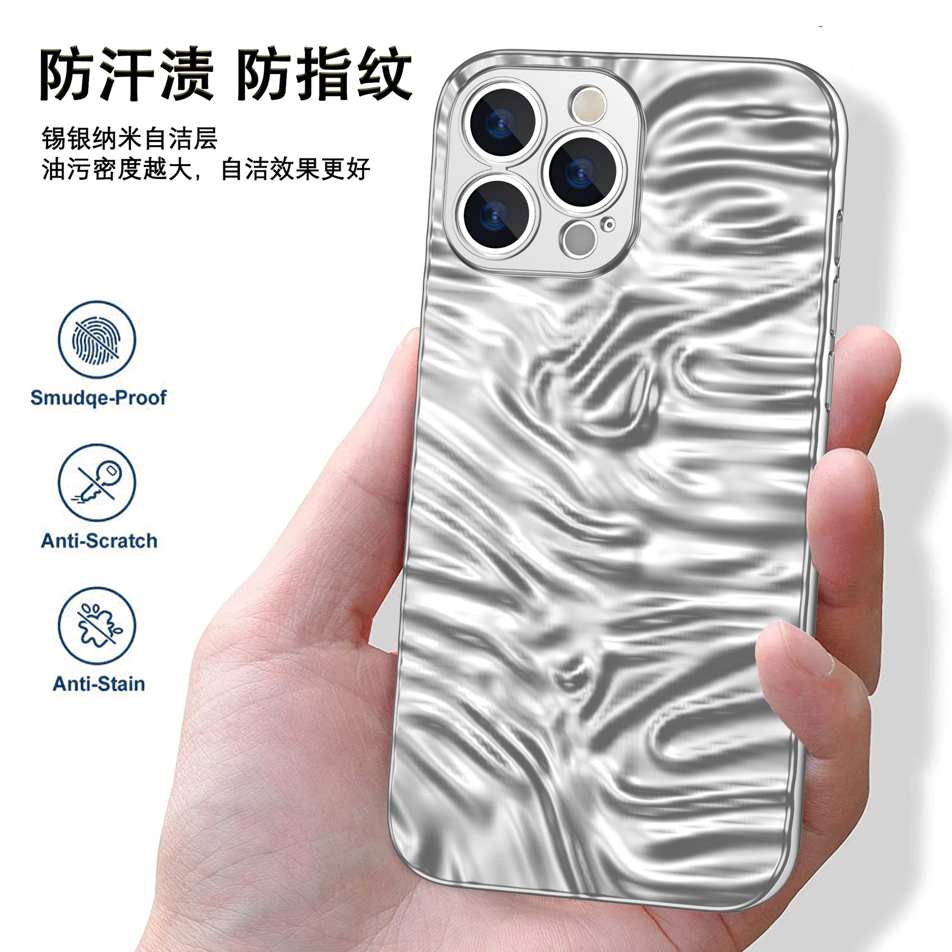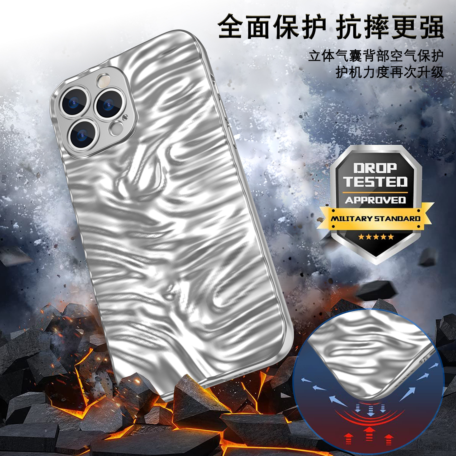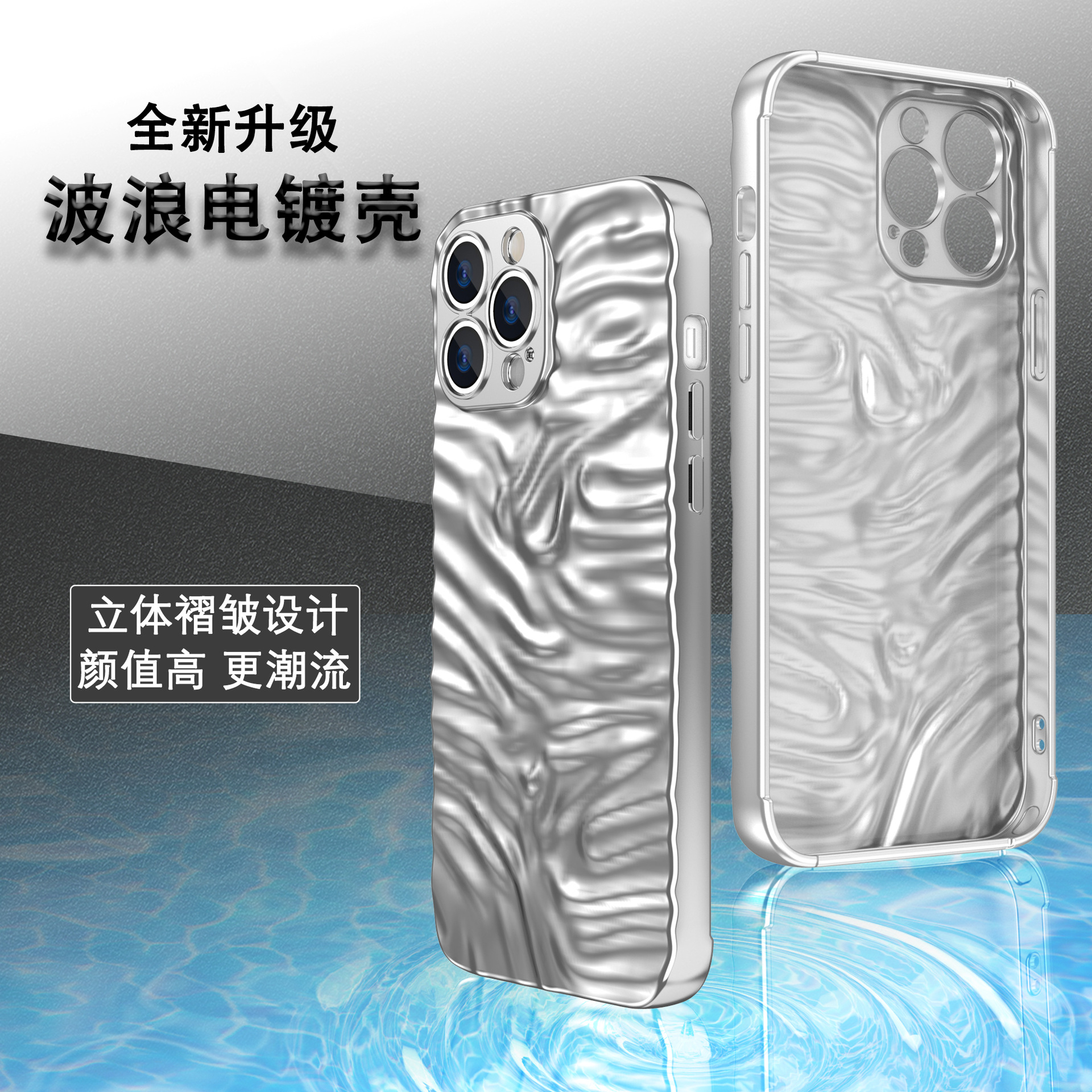 • 商品名称:新款电镀波浪纹适用iPhone15Pro手机壳苹果13Promax软胶精孔全包