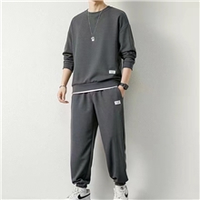 华夫格长袖套装男士T恤休闲一套衣服春秋季潮流纯色宽松秋装体恤
