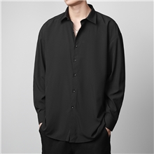 男士长袖衬衫免烫春秋款休闲港风垂感宽松黑色衬衣高级感痞帅外套