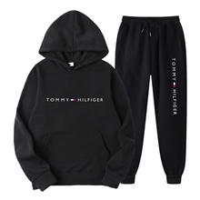 新款春秋休闲男女连帽衫套装外贸爆款宽松抓绒休闲印花卫衣潮流T
