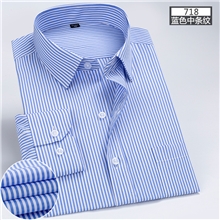 新款商务条纹衬衫春秋季男士长袖衬衣韩版修身职业装面试纯白衬衫