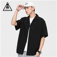 東雨2023男装夏季短袖衬衫夏威夷宽松纯色休闲翻领普通短袖衬衫男