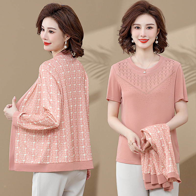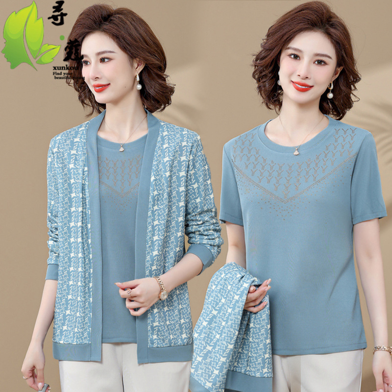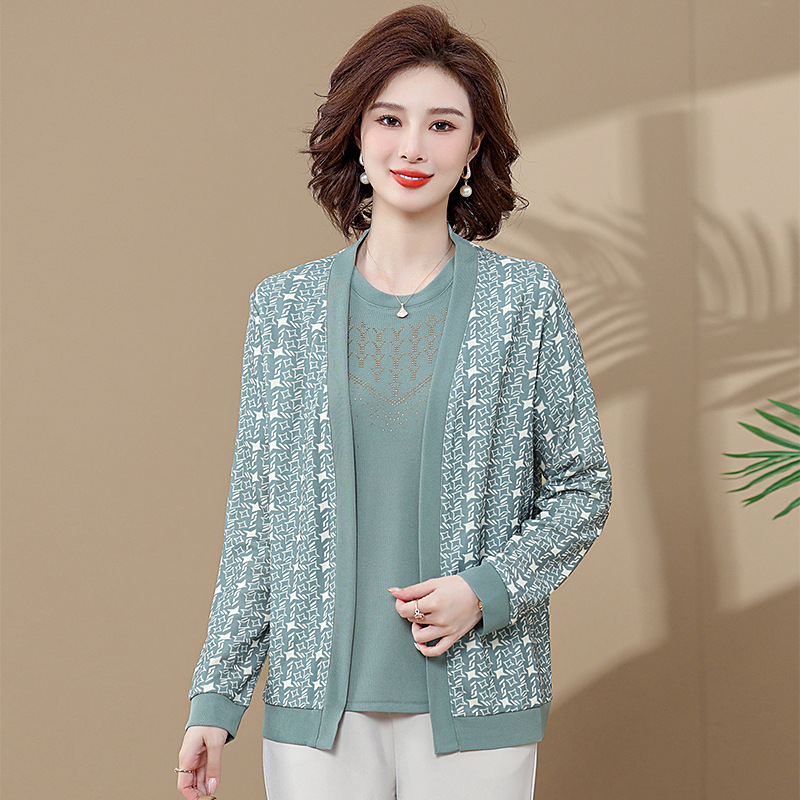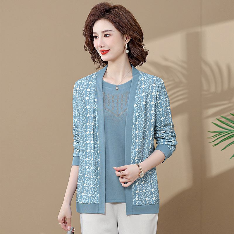 • 商品名称:阔太太春秋洋气针织衫中年女装早秋上衣两件套中老年妈妈秋装套装