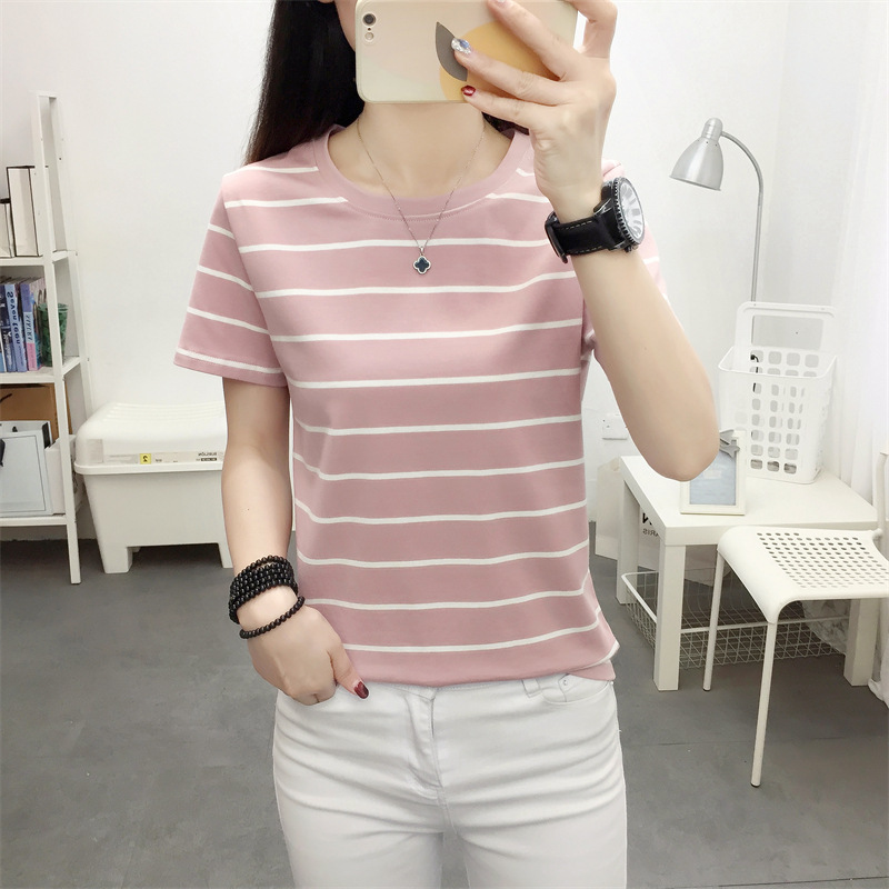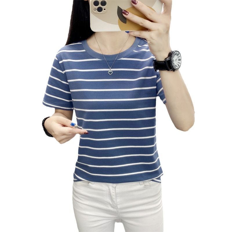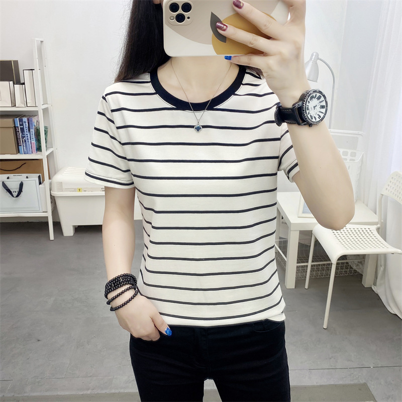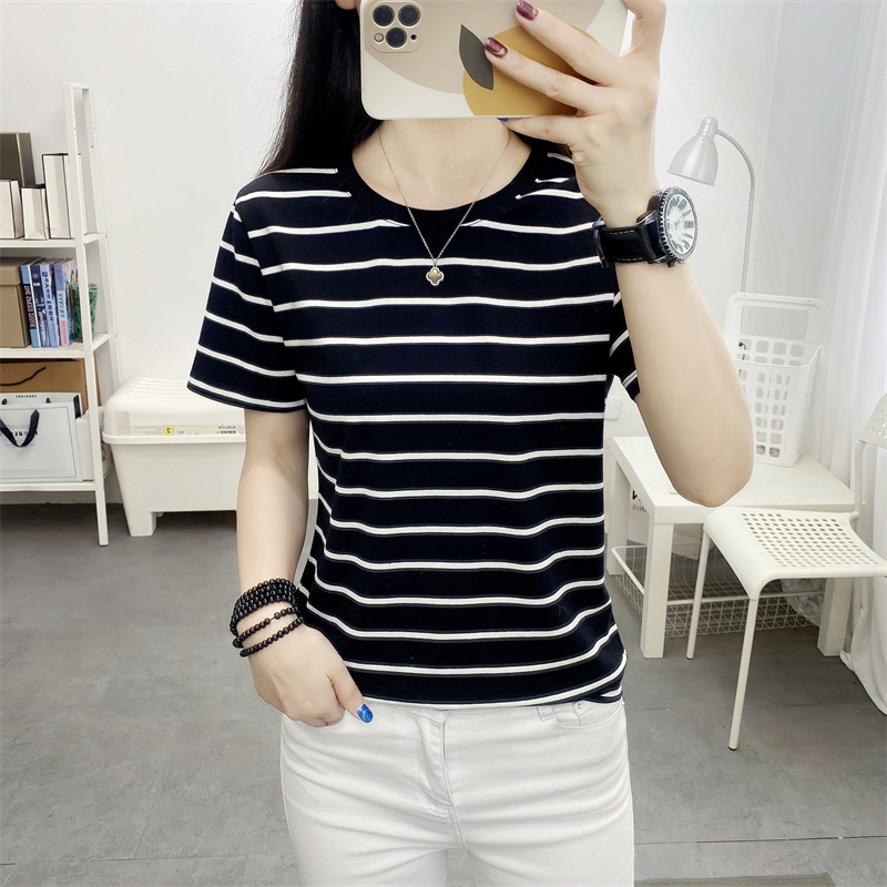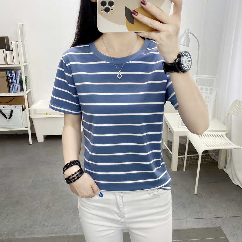 • 商品名称:中老年妈妈遮肚子上衣夏装新款圆领短袖t恤大码宽松显瘦条纹体恤