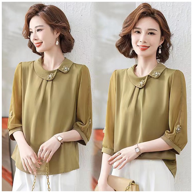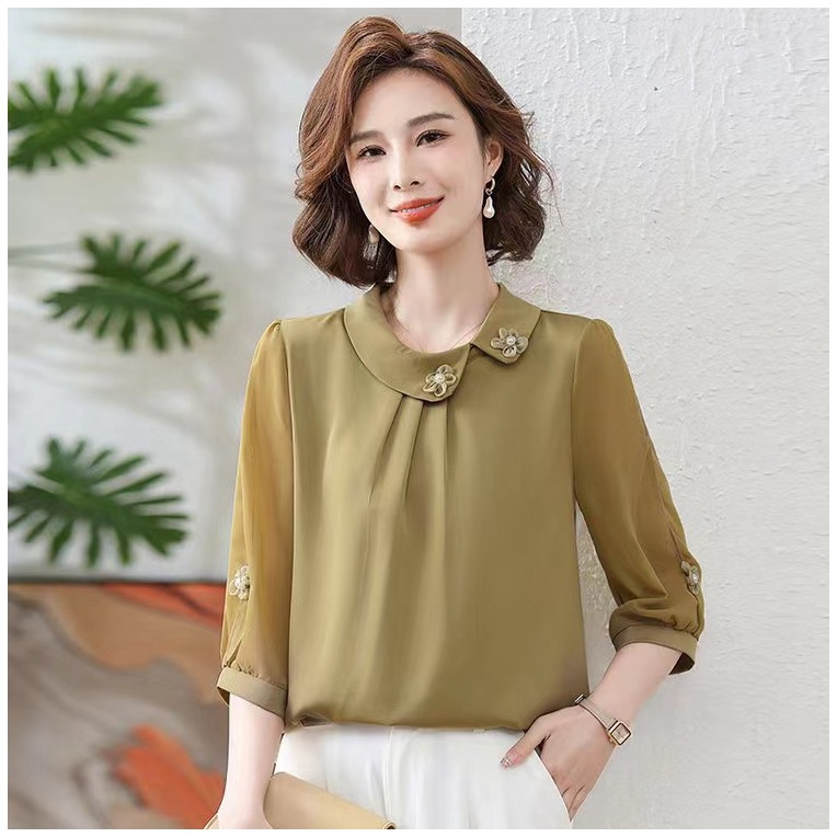 • 商品名称:直播款 2024春季新款减龄时尚衬衫中老年女装雪纺衬衫气质上衣女