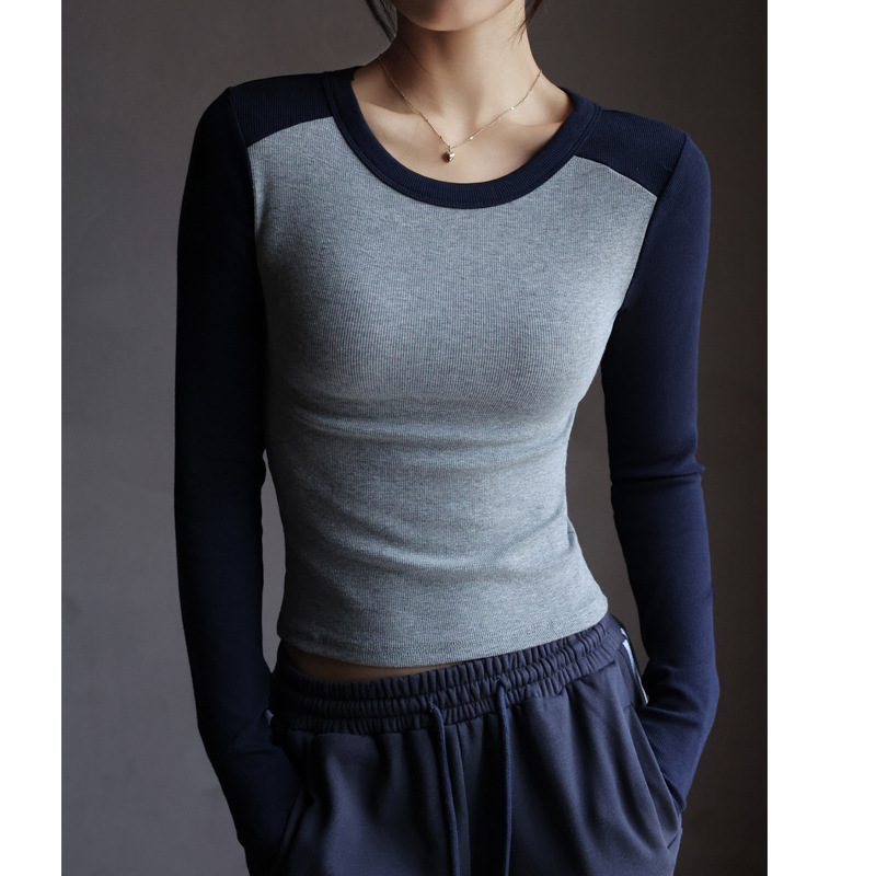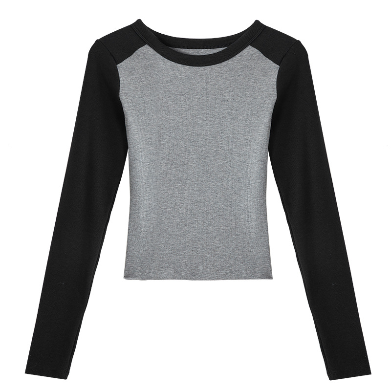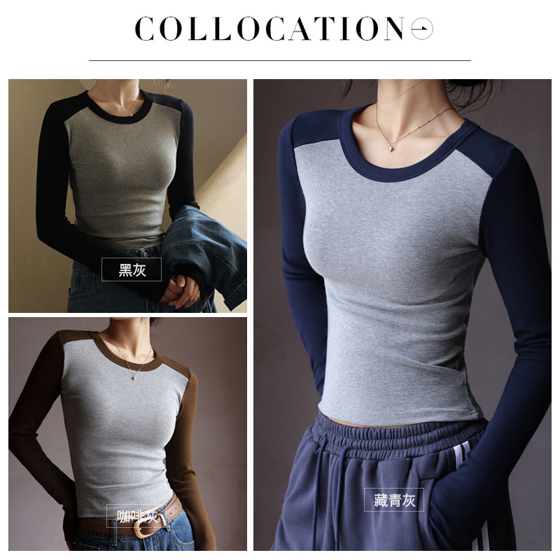 • 商品名称:高品质纯棉圆领撞色插肩袖打底衫女秋季内搭显瘦网红长袖t恤上衣