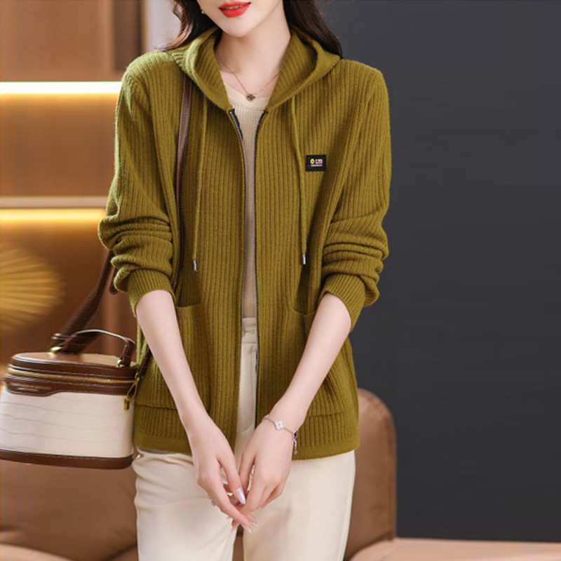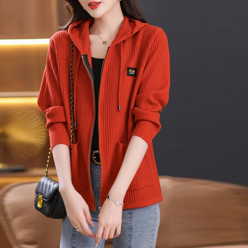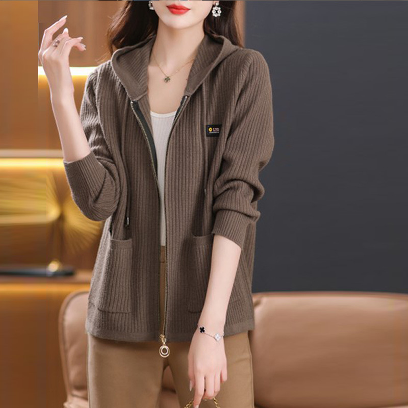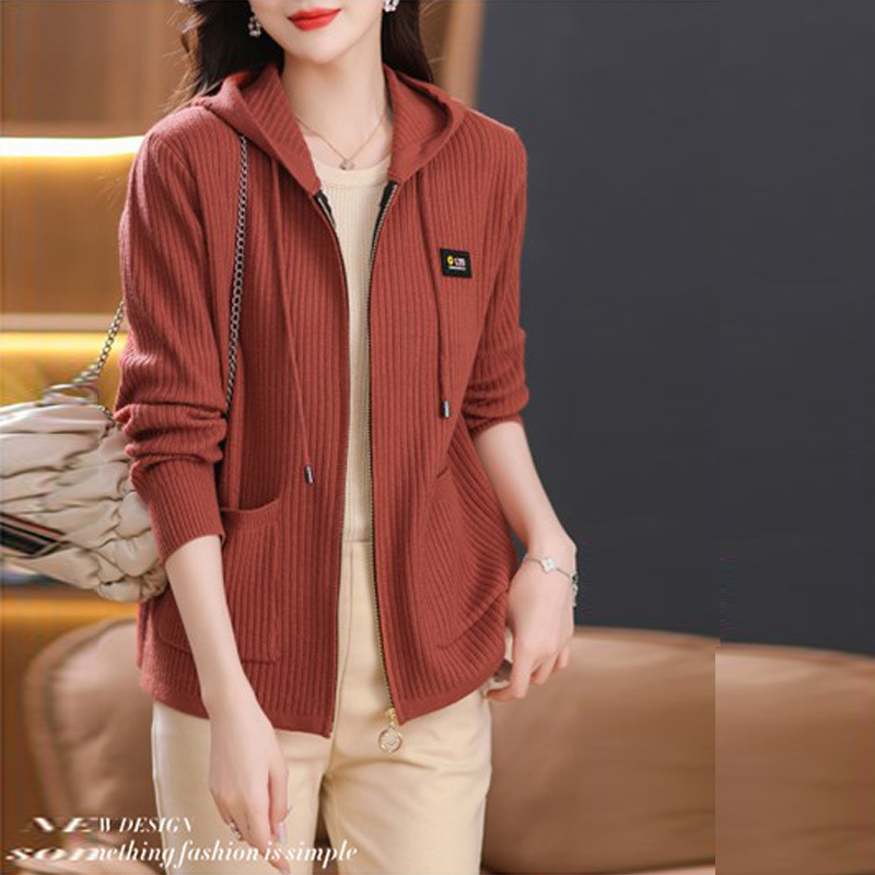 • 商品名称:连帽针织开衫外套女春秋季新款中年妈妈大码女装时尚毛衣现货