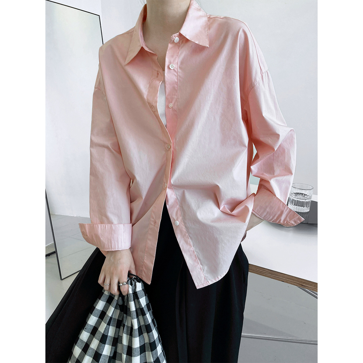 • 商品名称:鹿西 秋季新款60支棉纯色长袖衬衫女简约宽松外搭叠穿休闲衬衣319