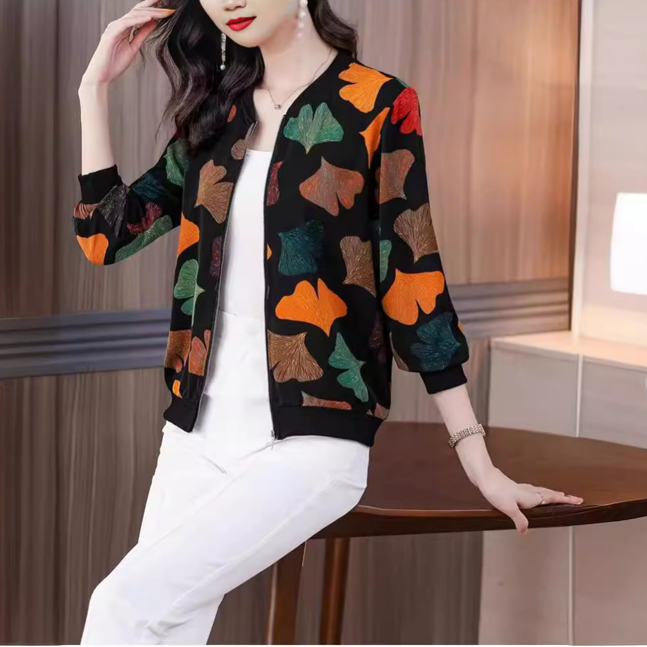 • 商品名称:时尚印花色薄款拉链短款外套女棒球服春夏中老年妈妈装大码防晒衣