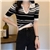 撞色条纹短袖恤女夏季薄款领修身设计感针织衫休闲百搭上衣
