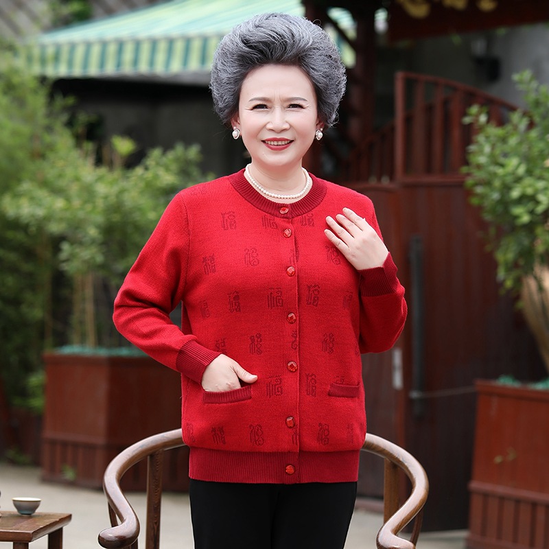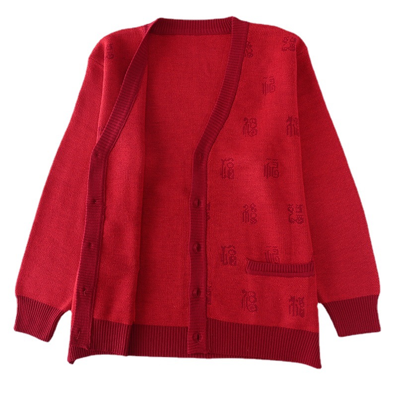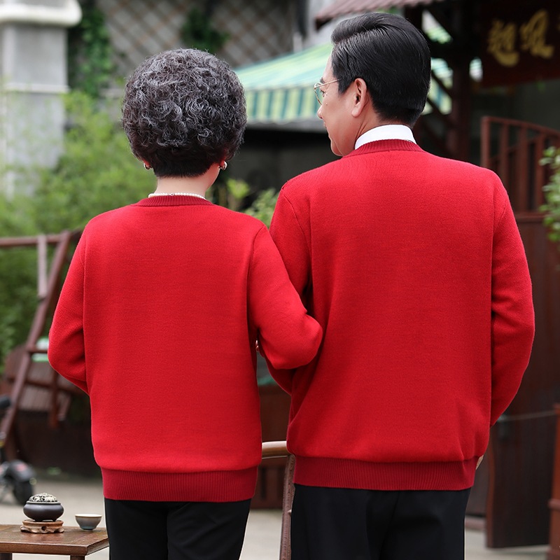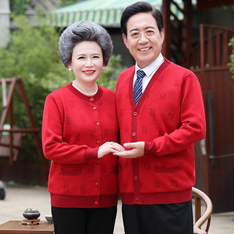 • 商品名称:中老年人男大红本命年毛衣外套女福字羊毛衫秋冬加厚情侣唐装开衫