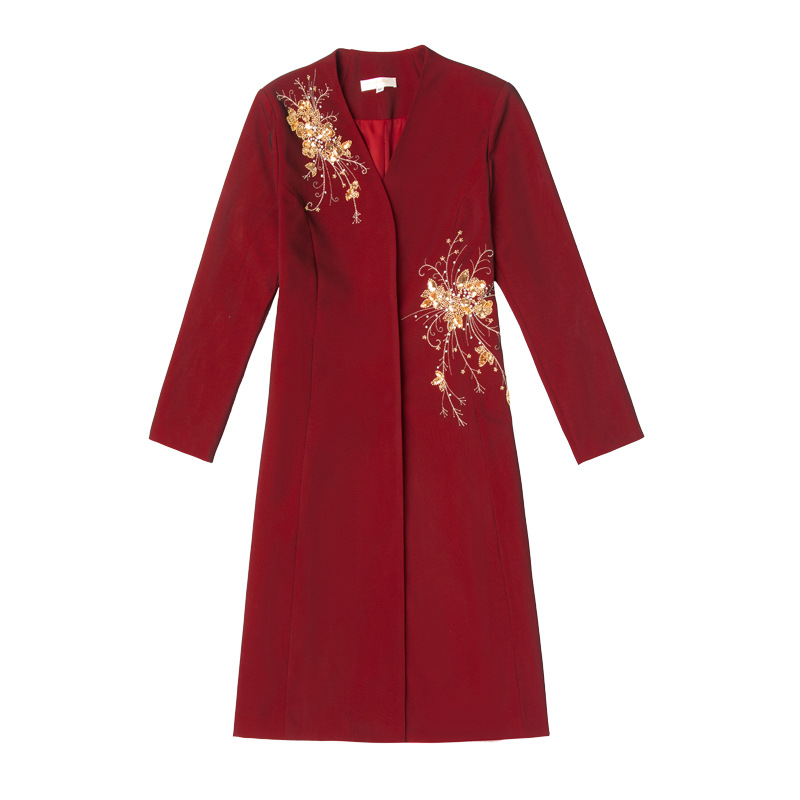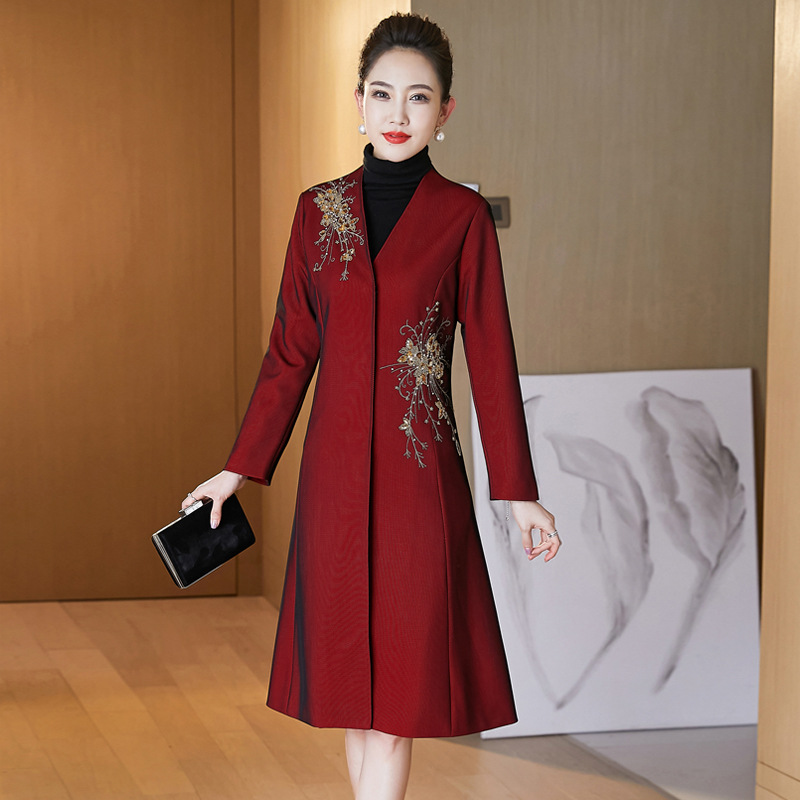 • 商品名称:22年春季新款高贵夫人中年婚宴礼服外套大码妈妈装奢华中长款风衣