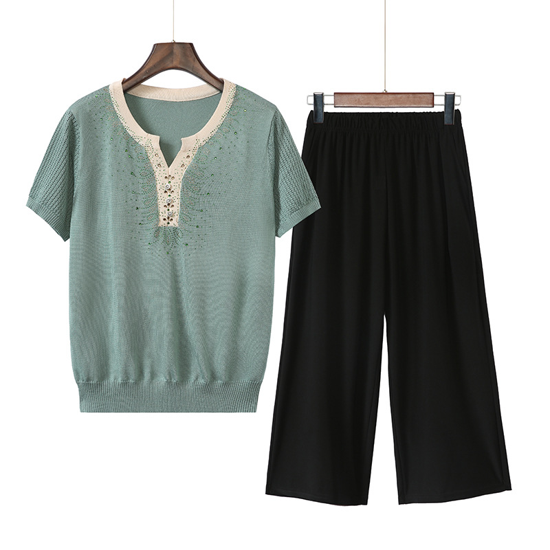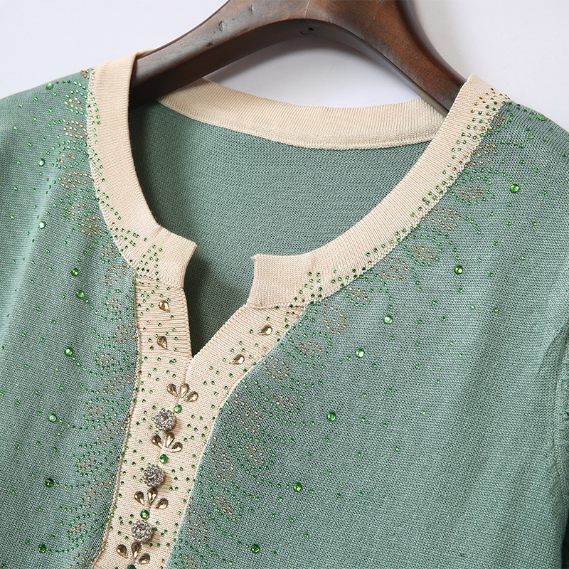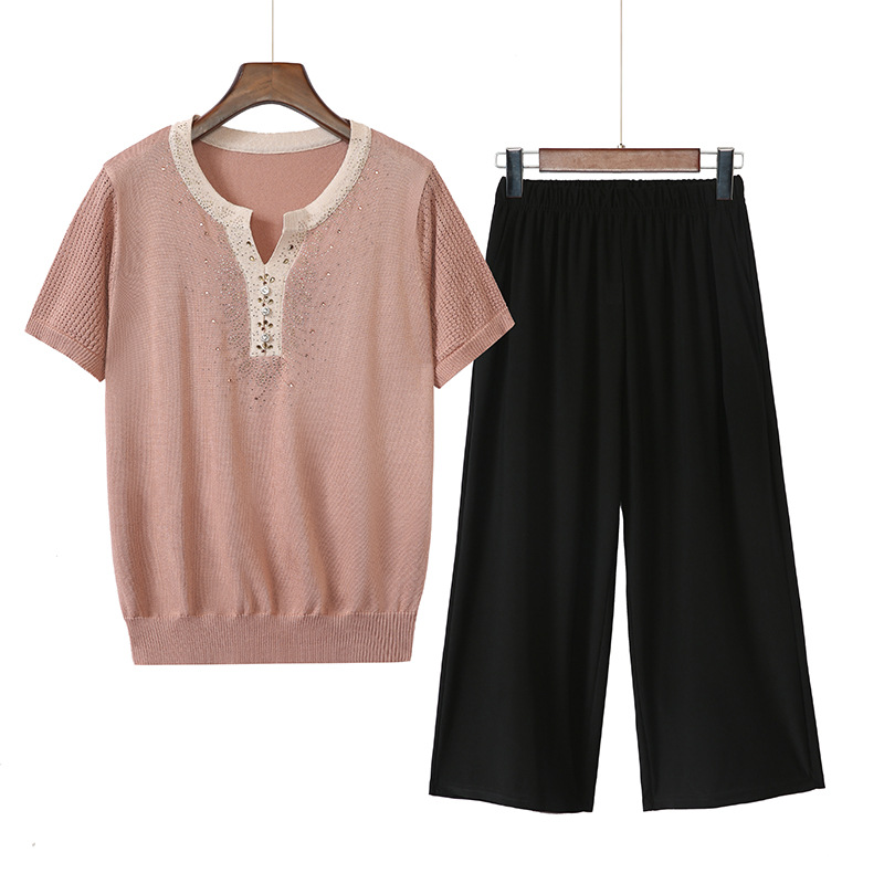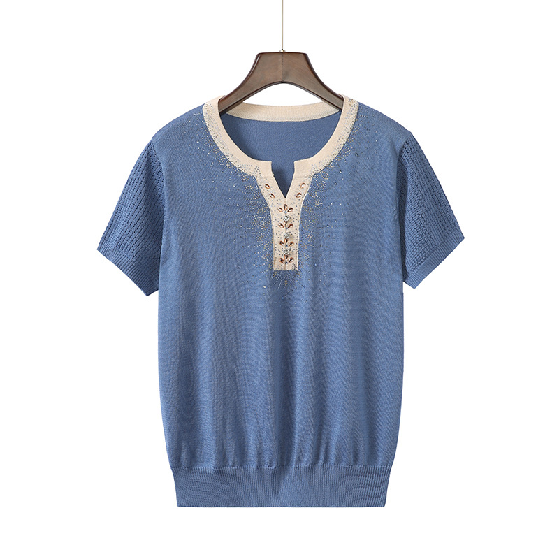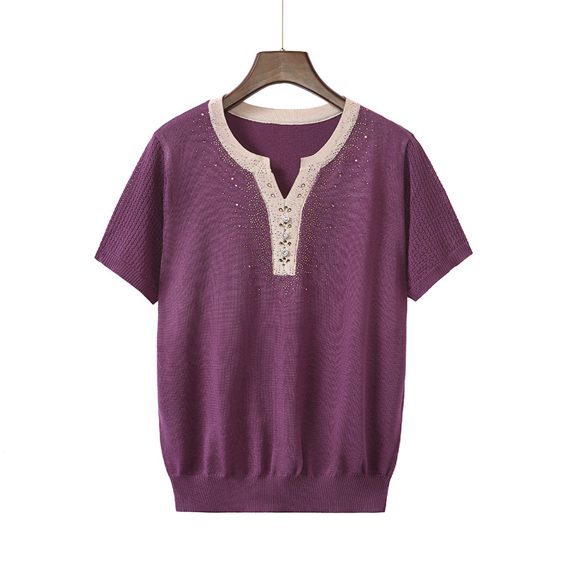 • 商品名称:中年女装夏季冰丝短袖妈妈装针织衫40岁50纯色桑蚕丝上衣宽松打底