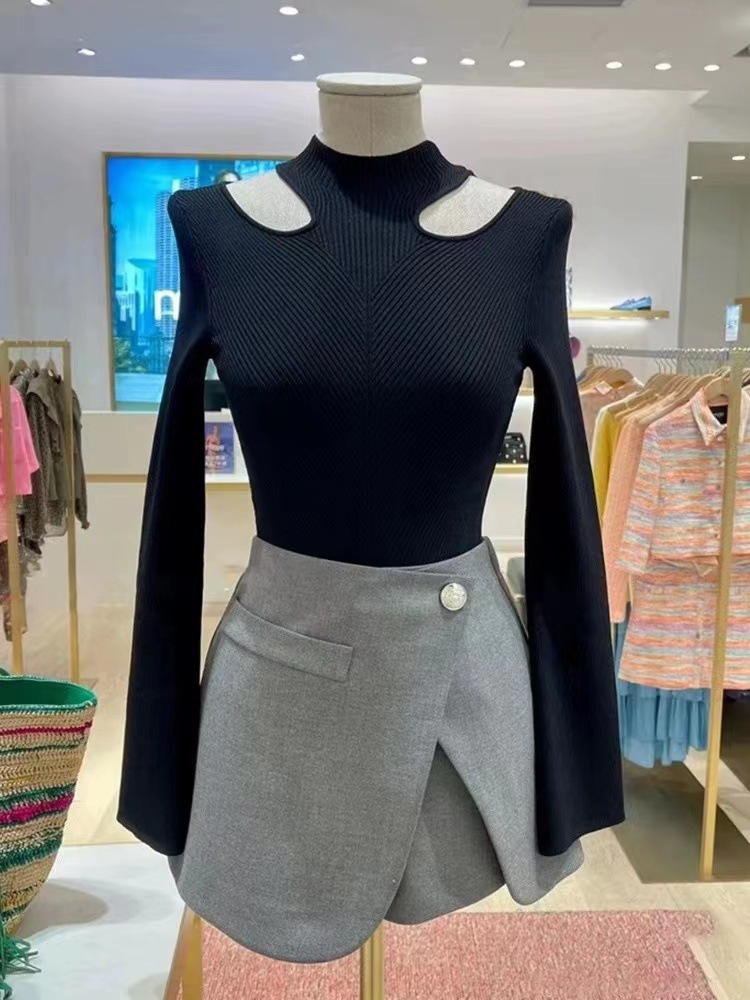 • 商品名称:法式优雅M2023年早秋新款纯色露肩打底衫针织上衣女