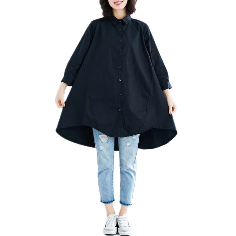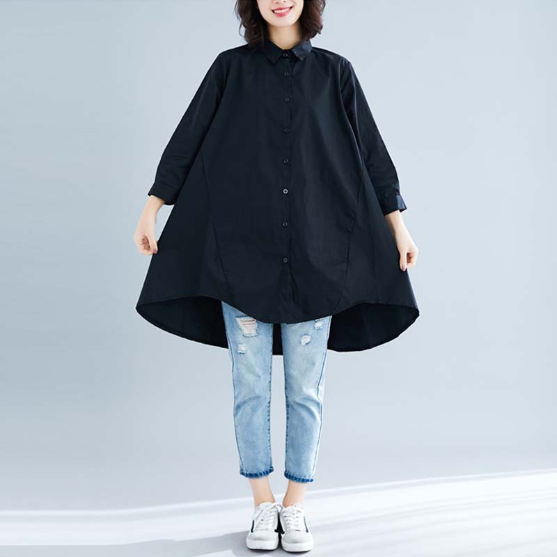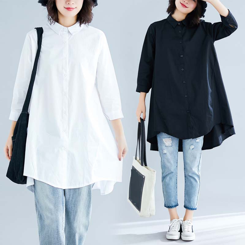 • 商品名称:实拍2024夏季新款文艺大码宽松纯色翻领七分袖衬衫女装中长款衬衣