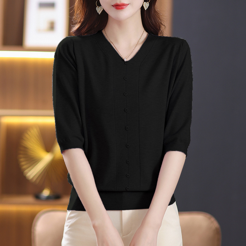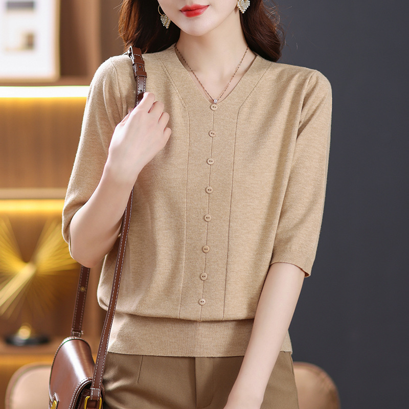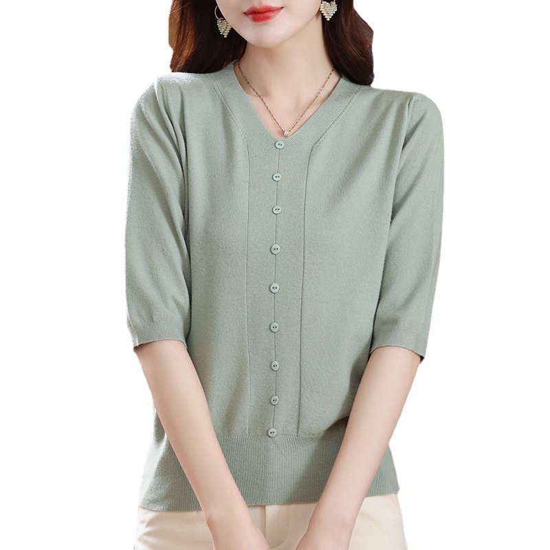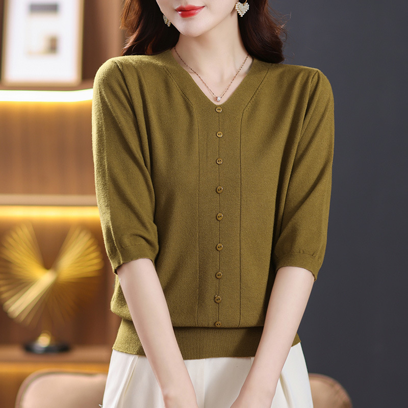 • 商品名称:春装七分袖针织衫女小香风上衣2023年春夏爆款中年妈妈v领打底衫