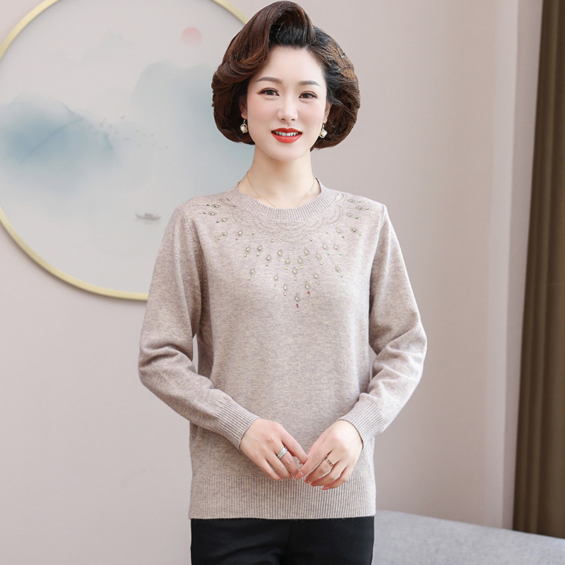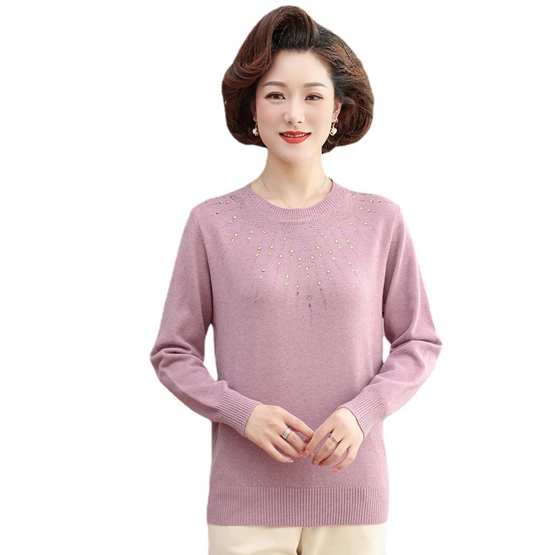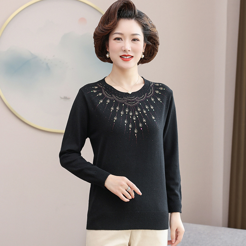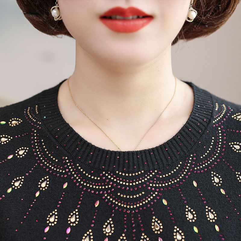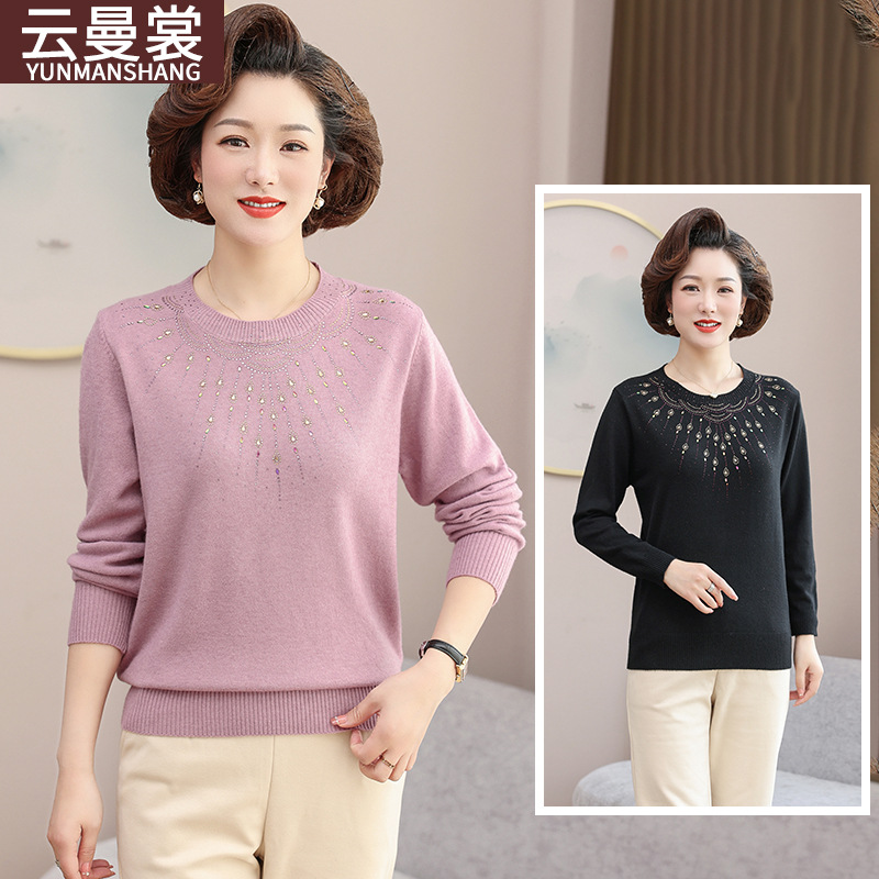 • 商品名称:2024新款中年妈妈春装毛衣时尚烫钻针织衫中老年春秋宽松打底上衣