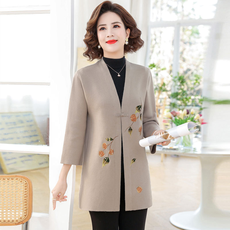 • 商品名称:妈妈装秋冬毛衣开衫外套中长款50岁中老年妇女洋气高贵针织衫上衣