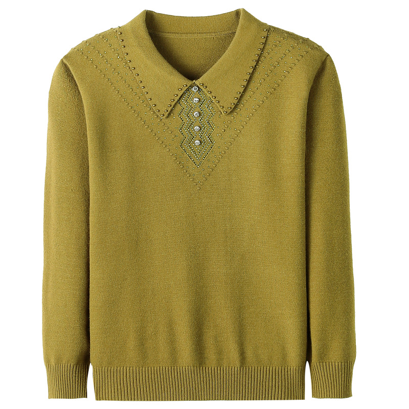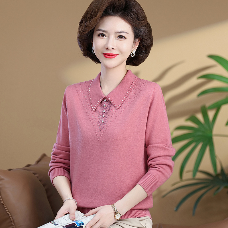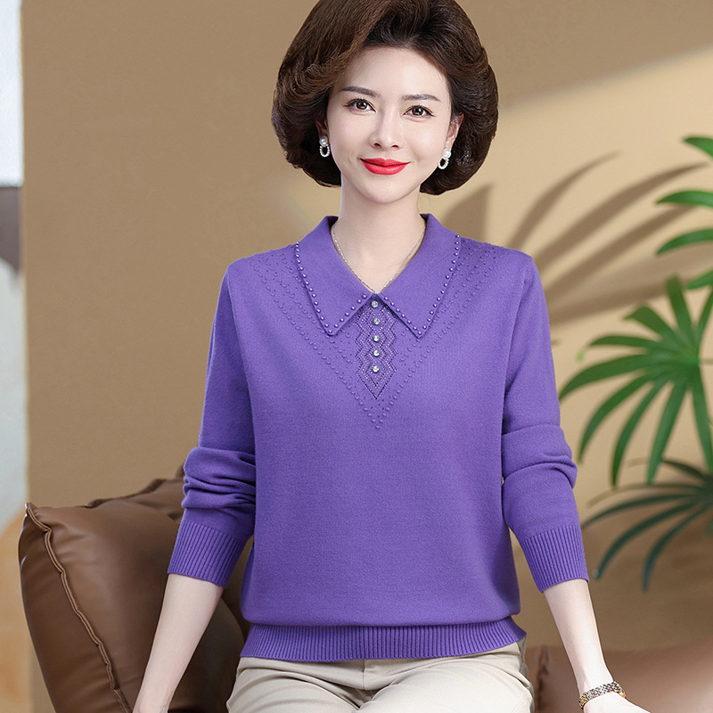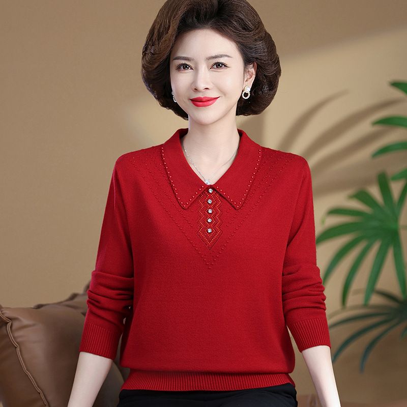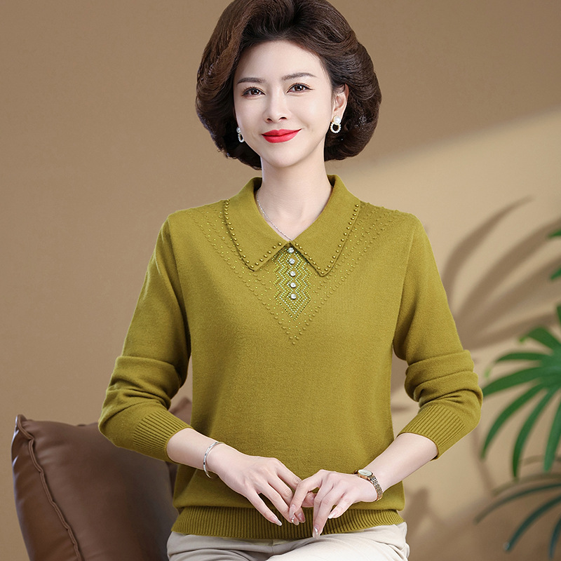 • 商品名称:中老年女装时尚翻领春季毛衣针织衫大码宽松翻领妈妈装纯色上衣