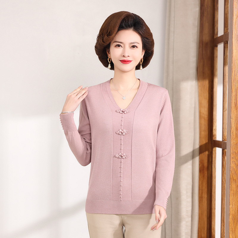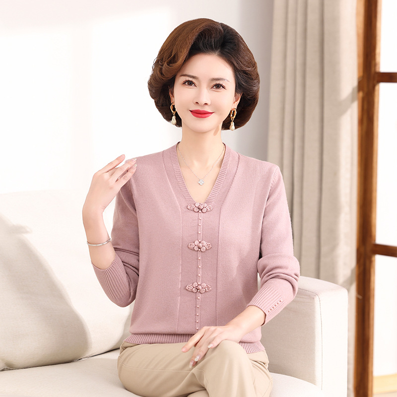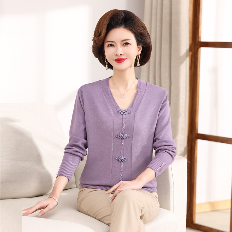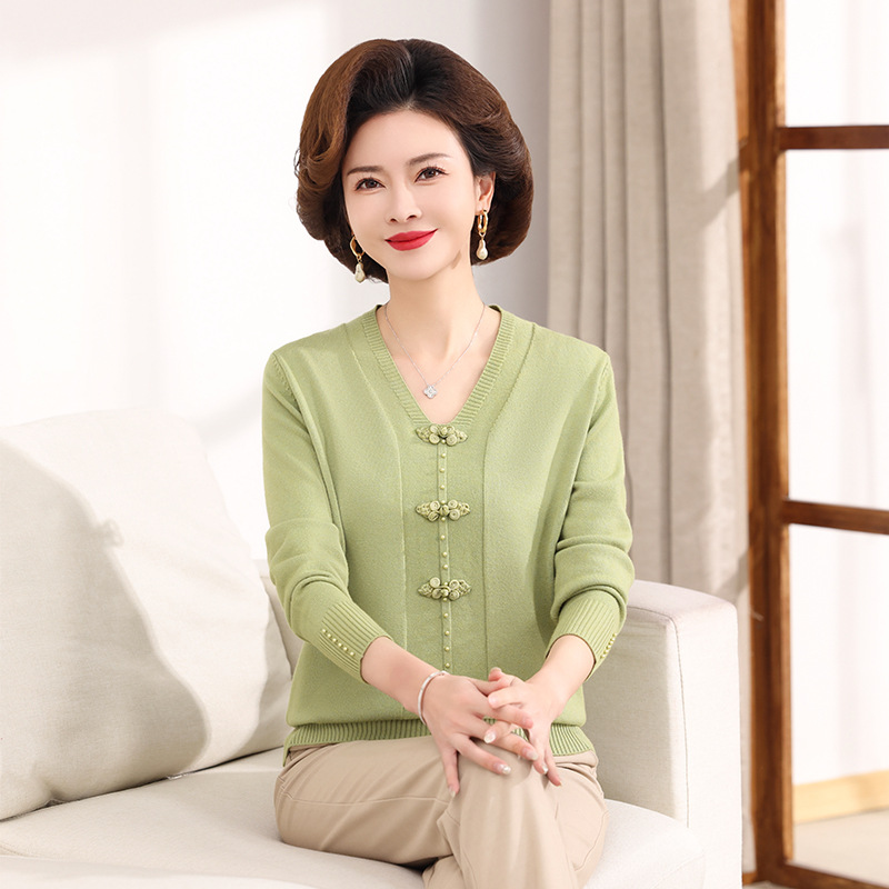 • 商品名称:中年妈妈春秋盘扣针织衫中老年女装新中式打底衫上衣百搭时尚毛衣