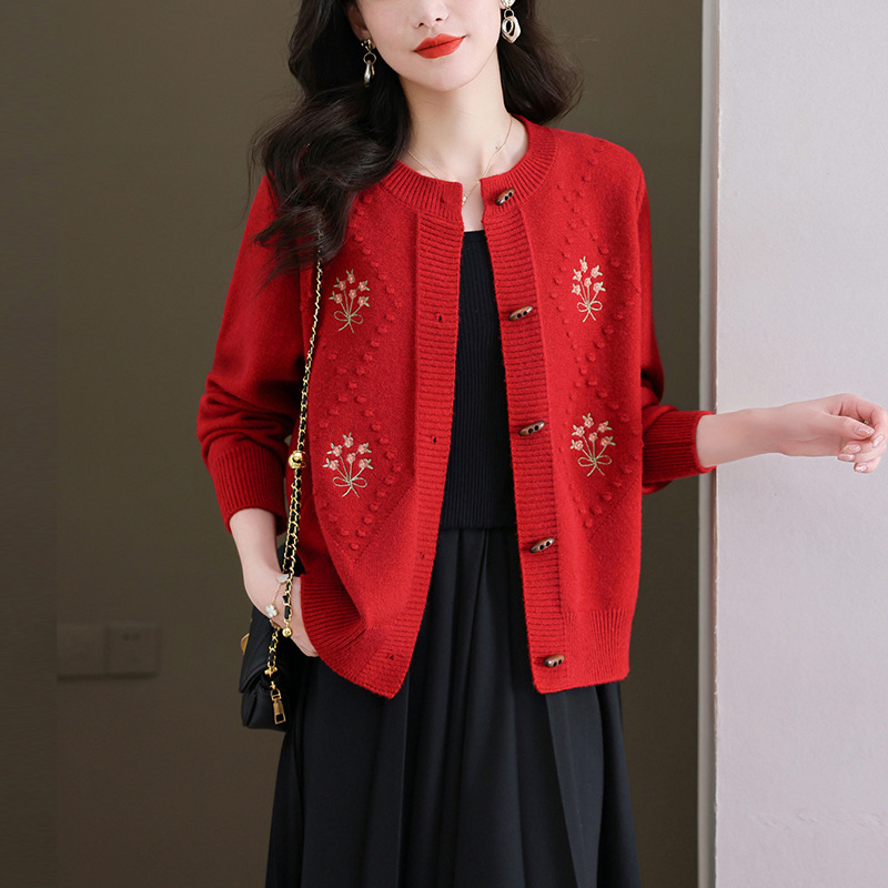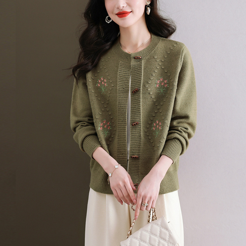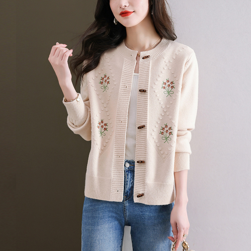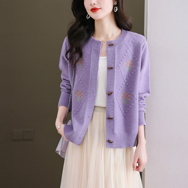 • 商品名称:绣花毛衣开衫2024春秋新款中年女士外套显瘦舒适针织外搭气质上衣