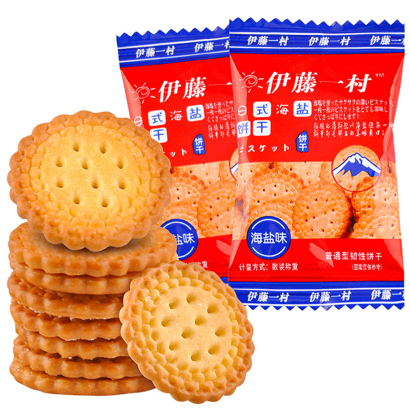 • 商品名称:伊藤一村海盐饼干散装280g结婚喜糖喜饼网红风休闲小零食点心食品
