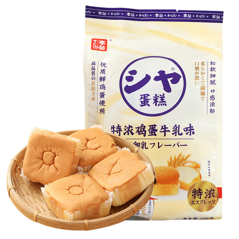 • 商品名称:本垒特浓鸡蛋牛乳味蛋糕代餐早餐面包糕点下午茶休闲小吃零食338g