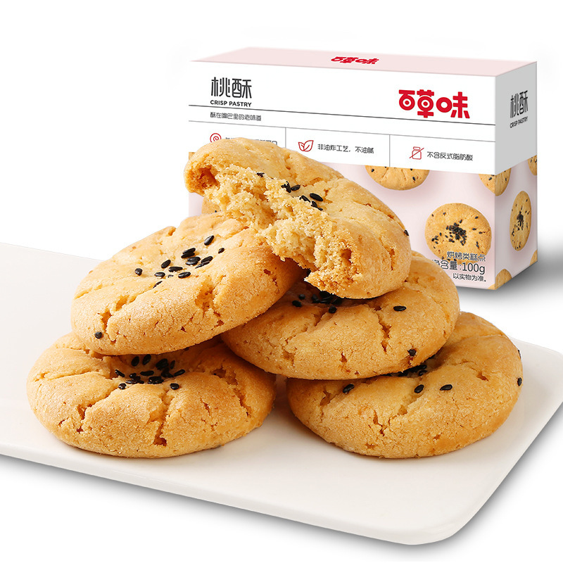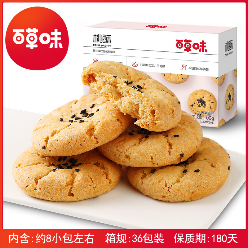 • 商品名称:百草味桃酥100g箱规36盒传统糕点点心早餐零食酥脆小吃小包装