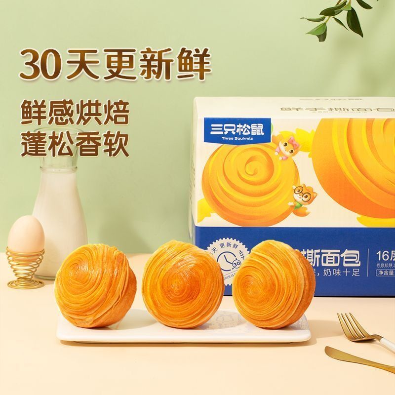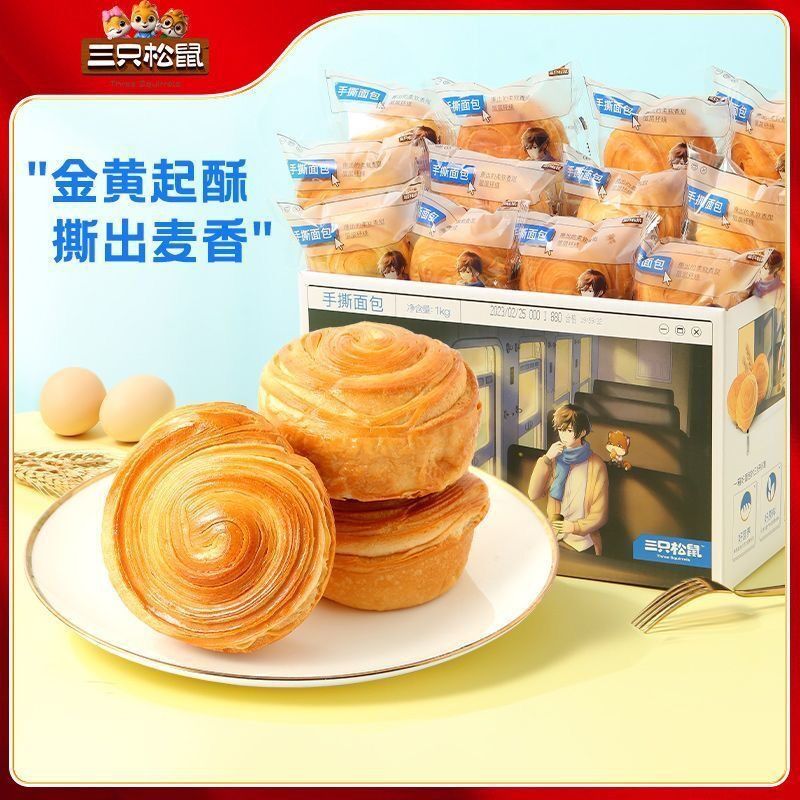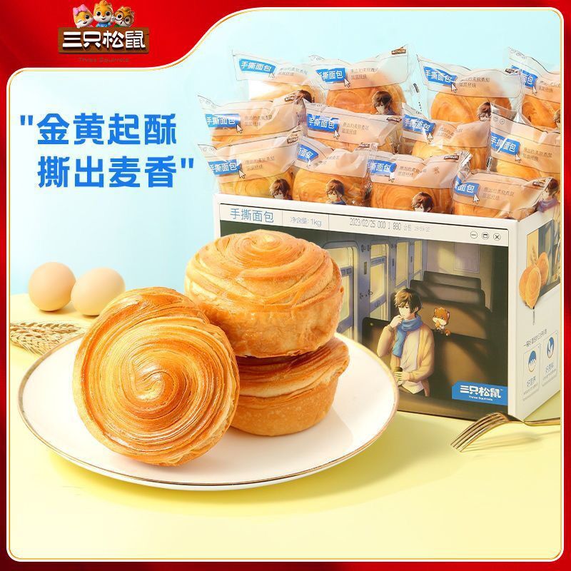 三只松鼠_手撕面包1kg 早餐蛋糕点健康吐司食品休闲零食整箱