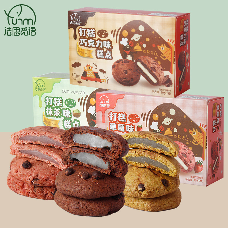 法思觅语巧克力草莓抹茶味打糕派小吃夹心曲奇零食90g