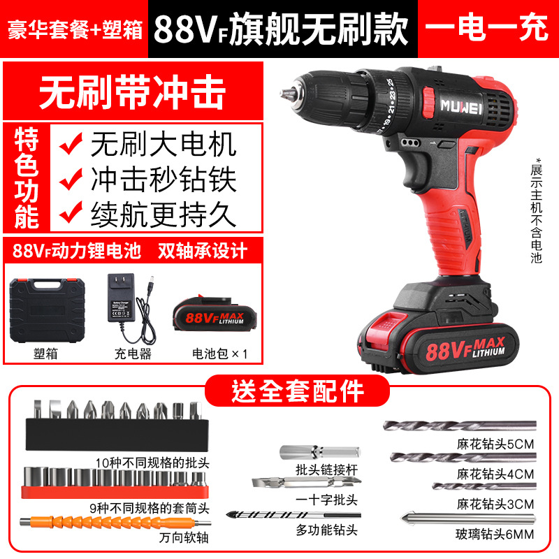 • 商品名称:手电钻转家用手钻充电式工具锂电钻多功能无刷冲击钻电动螺丝刀