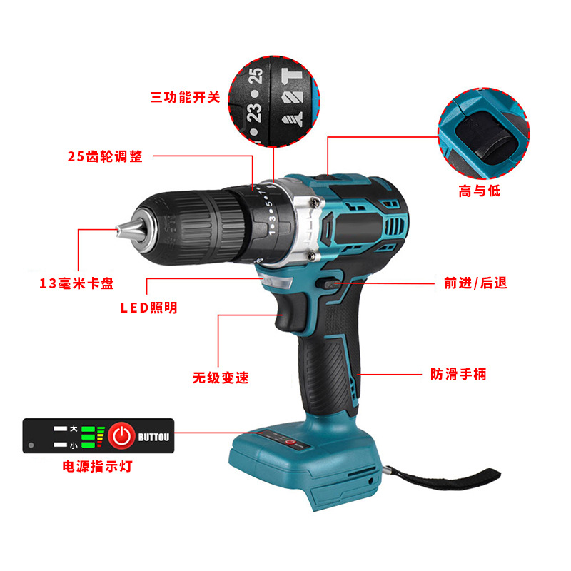 • 商品名称:无刷手电钻锂电钻冲击钻充电手电钻家用多功能打孔插电工具箱套装