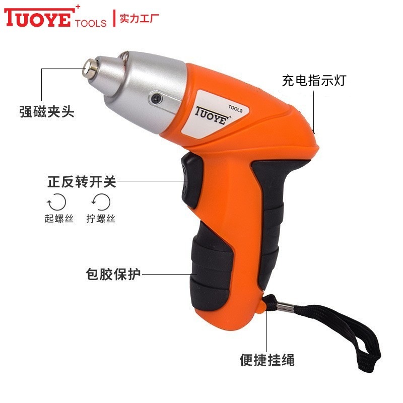 • 商品名称:TUOYE+拓野迷你家用电动螺丝刀螺丝批手电钻枪钻塑盒46件套装