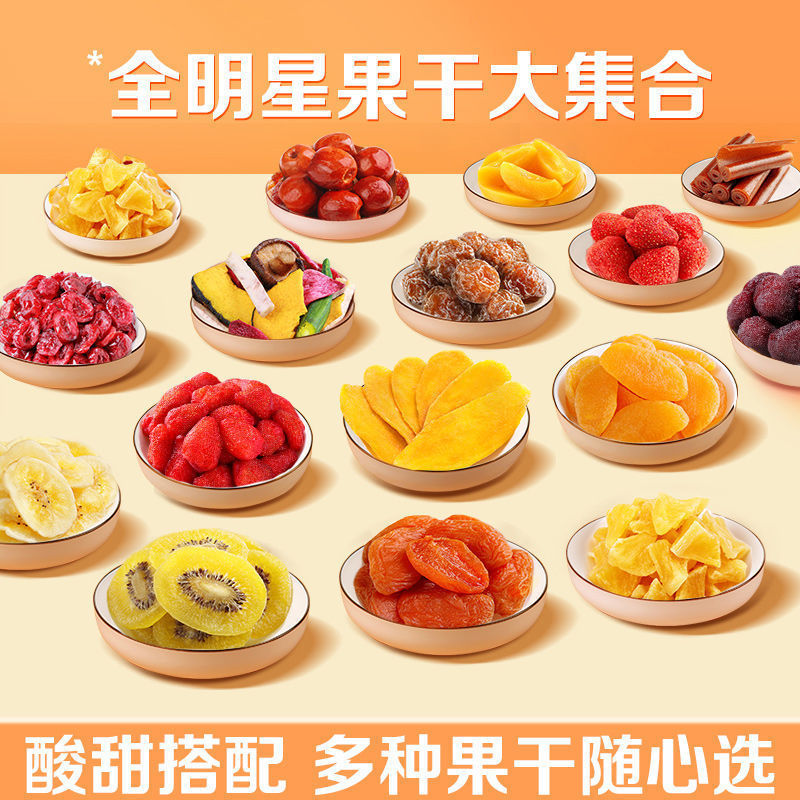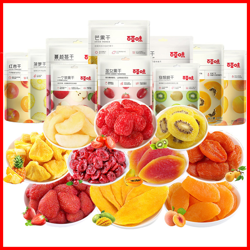 百草味芒果干黄桃草莓干果脯蜜饯即食网红休闲零食水果干