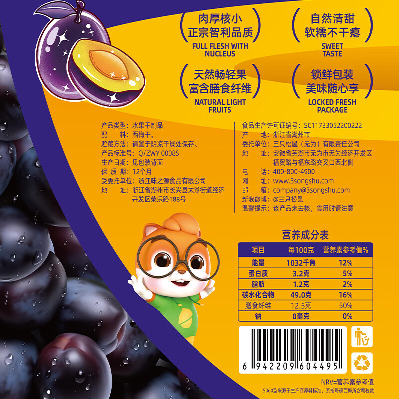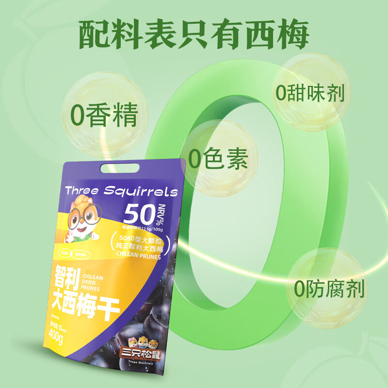 • 商品名称:三只松鼠智利西梅干50g梅子果干果脯休闲零食无添加大颗粒独立