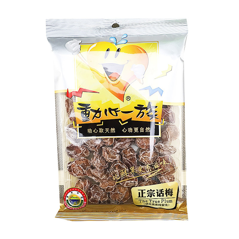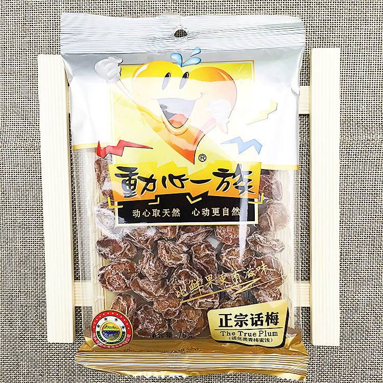 • 商品名称:动心一族正宗话梅75g九制泡水咸酸话梅肉干休闲食品果脯蜜饯