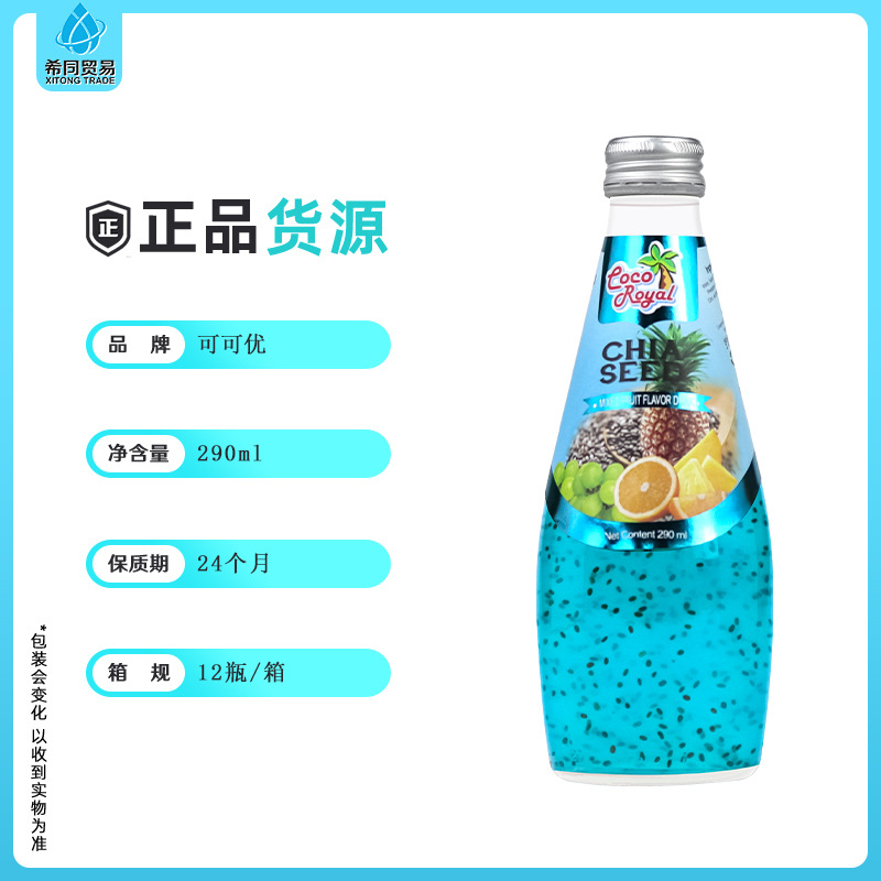 • 商品名称:泰国进口可可优奇亚籽290ml*12瓶整箱0脂肪水果味果汁饮料
