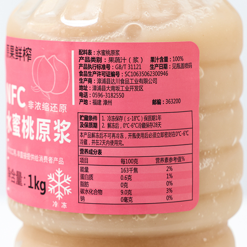 • 商品名称:2瓶达川NFC水蜜桃原浆鲜榨水蜜桃果汁含量100%芝芝桃桃奶茶专用